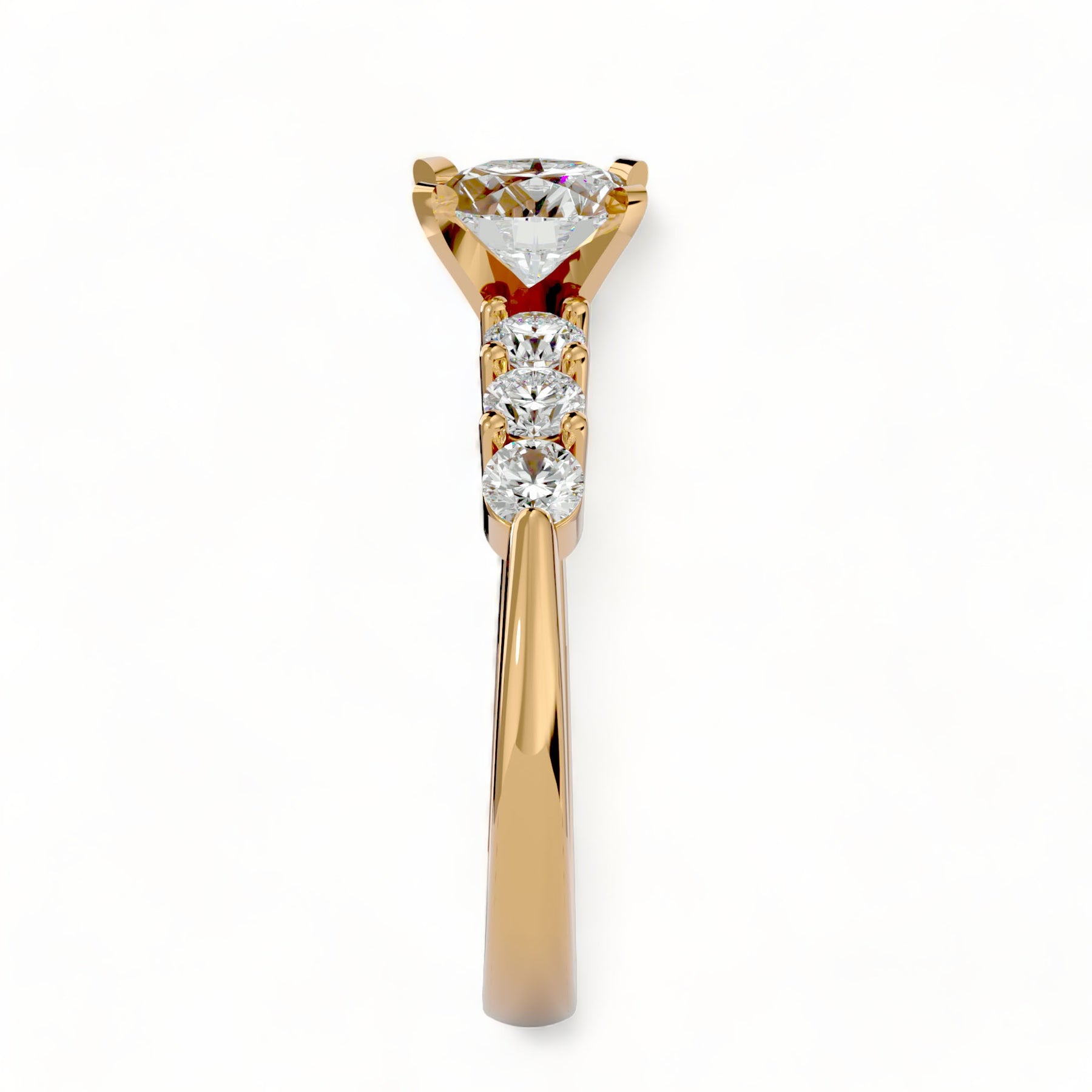We only use 100% recycled metal and material. We only use lab created moissanite and avoid mining harmful effects